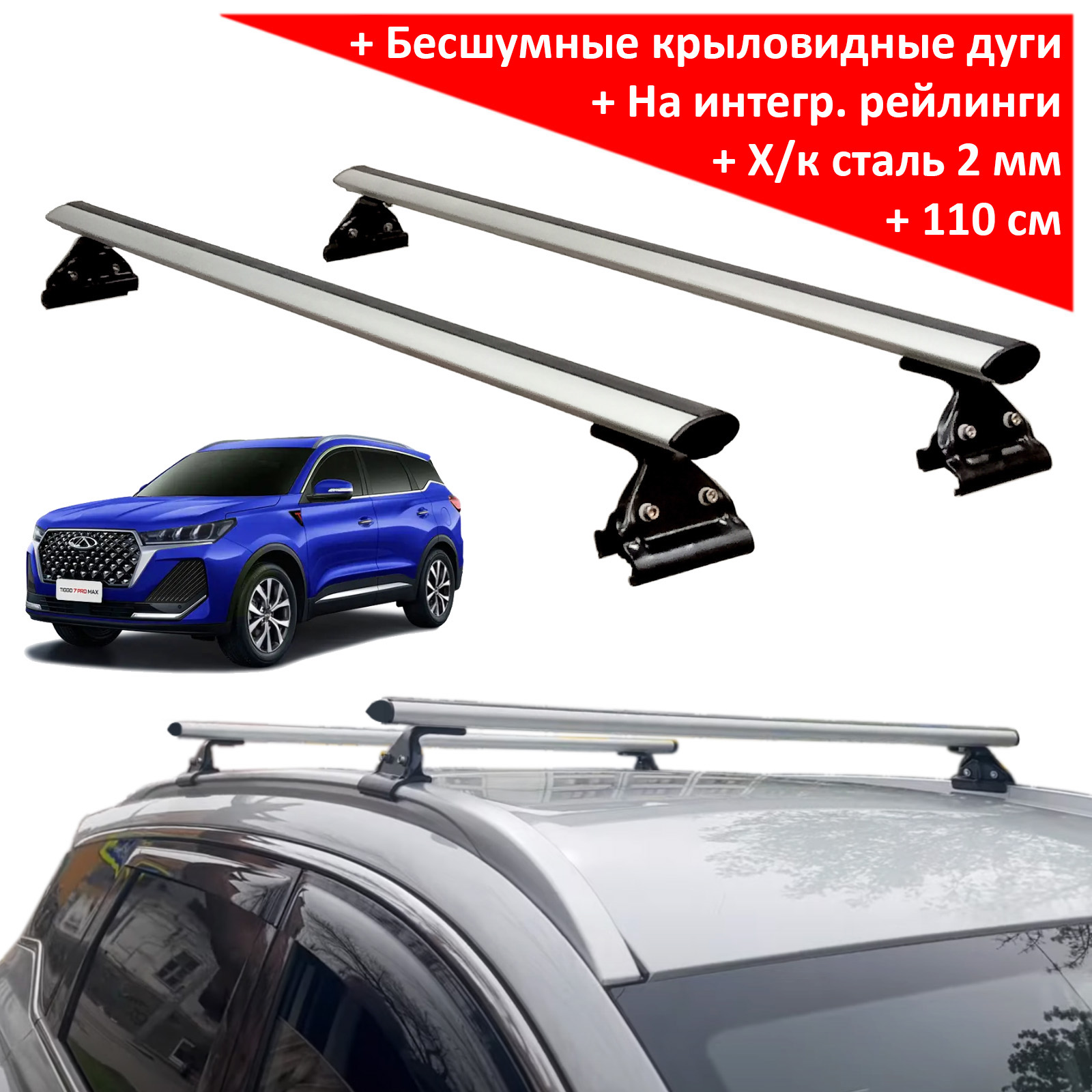 Багажник на интегрированные рейлинги Chery Tiggo 7 Pro / Pro Max с крыловидными дугами 58 мм и черными опорами Ultra Box.