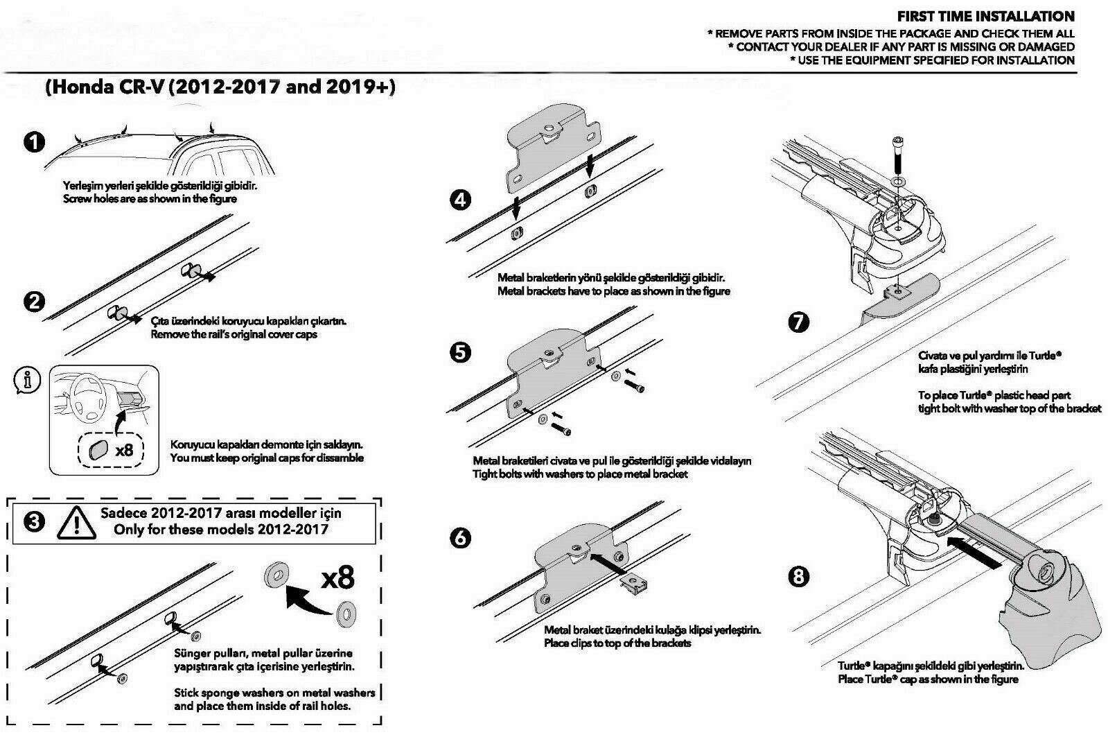 Представляем багажник на интегрированные рейлинги Turtle Air 3 для Honda CR-V 2012-17 / 2019-... от турецкого производителя автоаксессуаров CAN OTOMOTIV. Крепление данной багажной системы производится на интегрированный рейлинг (в штатное место), рекомендуемая нагрузка - до 75 кг.