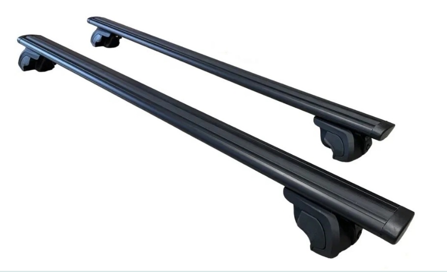 В основе конструкции - 2 алюминиевые поперечины крыловидного профиля черного цвета, длиной 1300 мм. Каждая дуга имеет резиновые уплотнители (верхние и нижние). Крепление на рейлинги осуществляется с помощью системы опор, выполненных из полимера. Части опор, соприкасающиеся с рейлингом имеют резиновое покрытие. Затяжка производится трубчатым ключом.