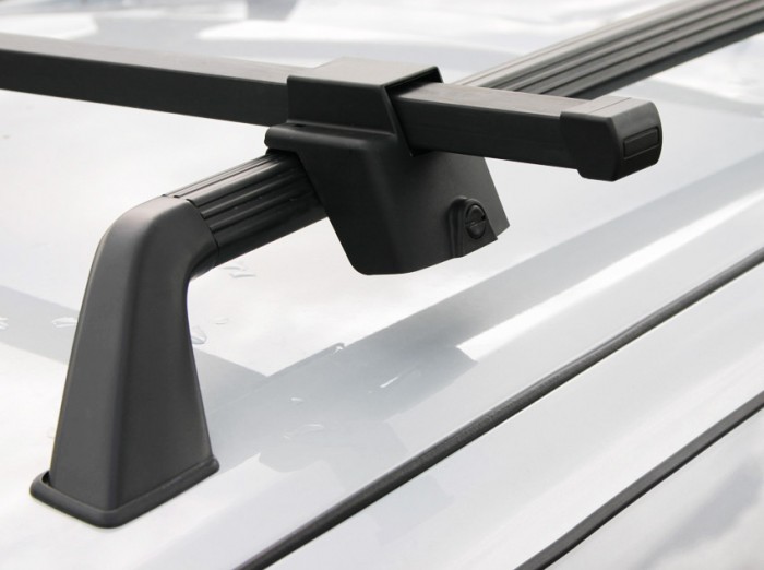 Конструкция багажника достаточно проста и включает в себя пару стальных дуг и механизм крепления на рейлинги. Дуги длиной 1100 мм станадартного прямоугольного профиля 20х30 мм, поверх имеют пластиковую оболочку, а концы закрываются заглушками. Крепление на рейлинги осуществляется металлическими зажимами, с наружней стороны закрываются пластиковым кожухом.