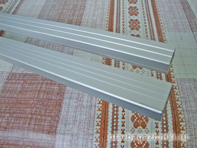 Алюминиевые поперечины на рейлинги прямоугольного профиля, производство Атлант (Россия), длина 1100 мм. Грузоподъемность до 75 кг (до 100 кг распределенной нагрузки)