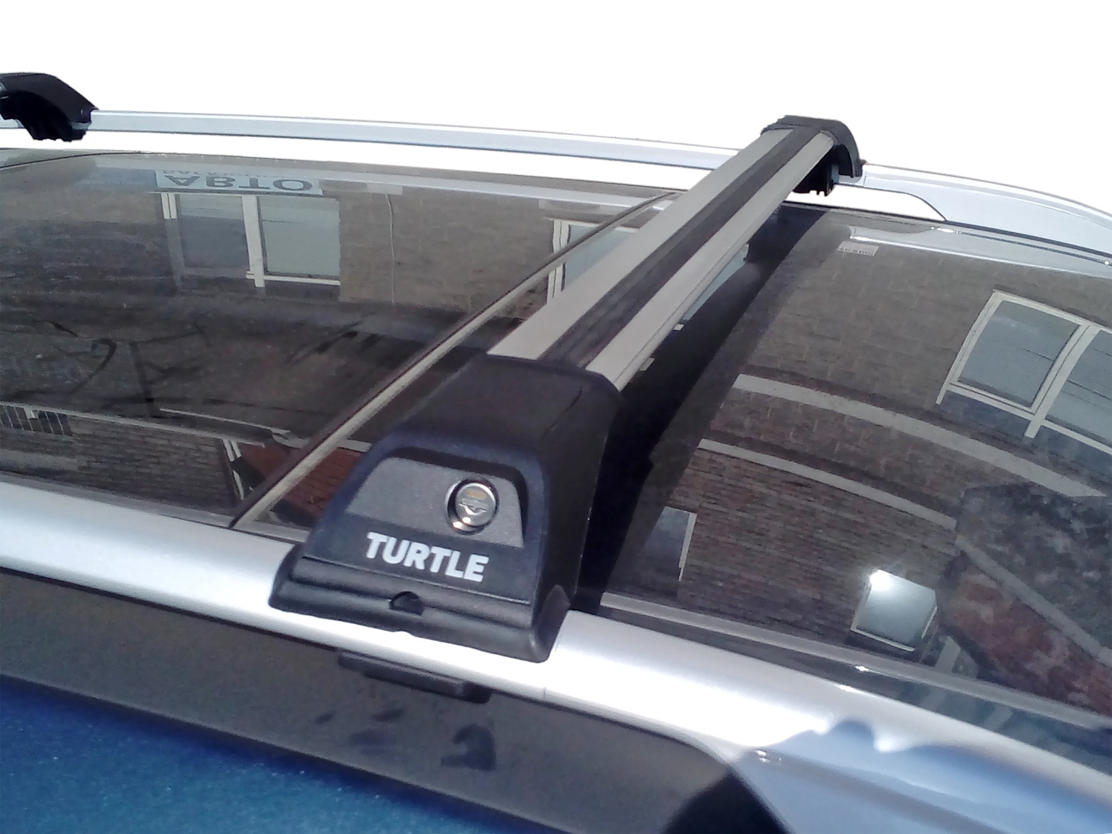 Бесшумная багажная система Turtle Tourmaline V1 (враспор, без вылетов), производство - Turtle Can Otomotive (Турция). Cеребристые дуги. Грузоподъемность до 75 кг