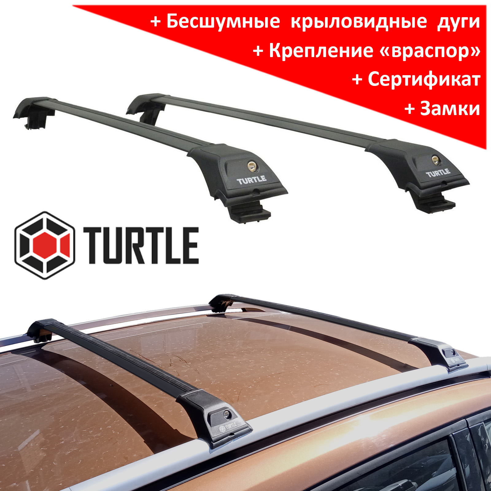 Багажник Turtle Tourmaline V1 черный на рейлинги, производство Turtle (Турция)