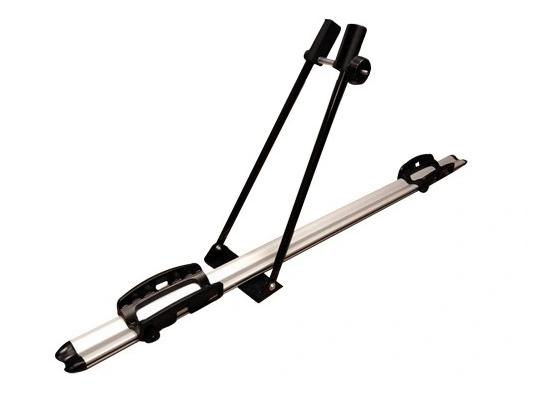Недорогой универсальный вариант перевозки велосипеда на крыше вашего автомобиля - велокрепление Inter алюминиевое от российской марки Inter. Изделие выполнено в серебристо-черном цвете, устанавливается на дуги прямоугольного и аэродинамического профиля. Максимальный вес велосипеда - 18 кг.