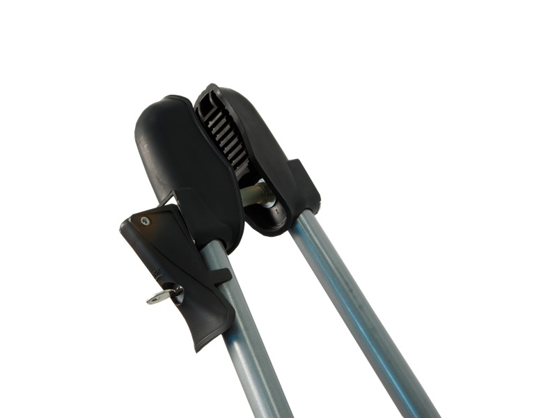 Конструкция представляет собой V-образный алюминиевый желоб серебристого цвета, 2 держателя рамы с резиновой прокладкой в месте соприкосновения с велорамой, 2 ремня для фиксации колес. Ставится на дуги прямоугольного и аэродинамического (до 82 мм) профиля, обхватывая дугу снизу. Крепление имеет металлический замок для предотвращения несанкционированного съема велосипеда, а также замок для защиты от снятия самого велокрепления.