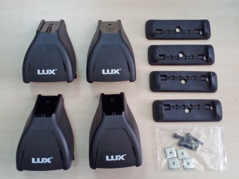 Опоры для дуг багажника Lux, тип БК1 (За дверной проем). Комплектация: 4 опоры, 4 пластиковых проставки, крепежный комплект.