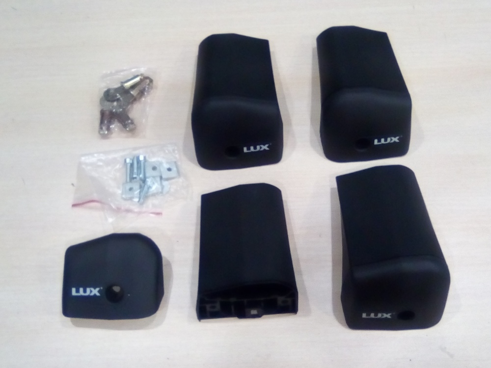 Опоры для дуг багажника Lux, тип БК4 Bridge (На интегрированный рейлинг / штатное место). Комплектация: 4 опоры, комплект замков, крепежный комплект.