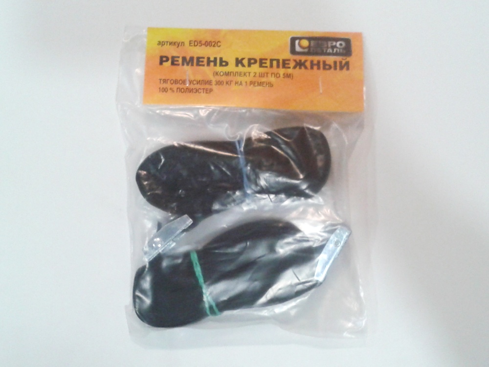 Комплект крепежных ремней "Евродеталь" (2 шт.) для фиксации груза на верхнем багажнике. Длина каждого ремня - 5 м, закрепление - с помощью пружинного зажима.