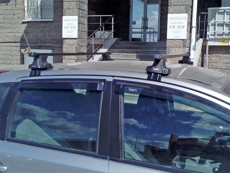 Универсальный багажник на крышу Nissan Note, D-Lux 1, стальные прямоугольные дуги